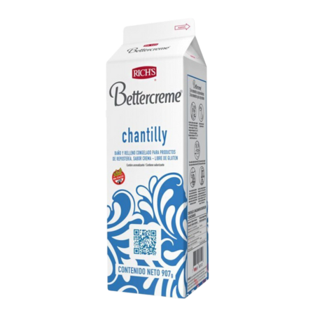 Cremas sabor Chantilly, endulzada, lista para batir. Rinde 3 veces su volumen.