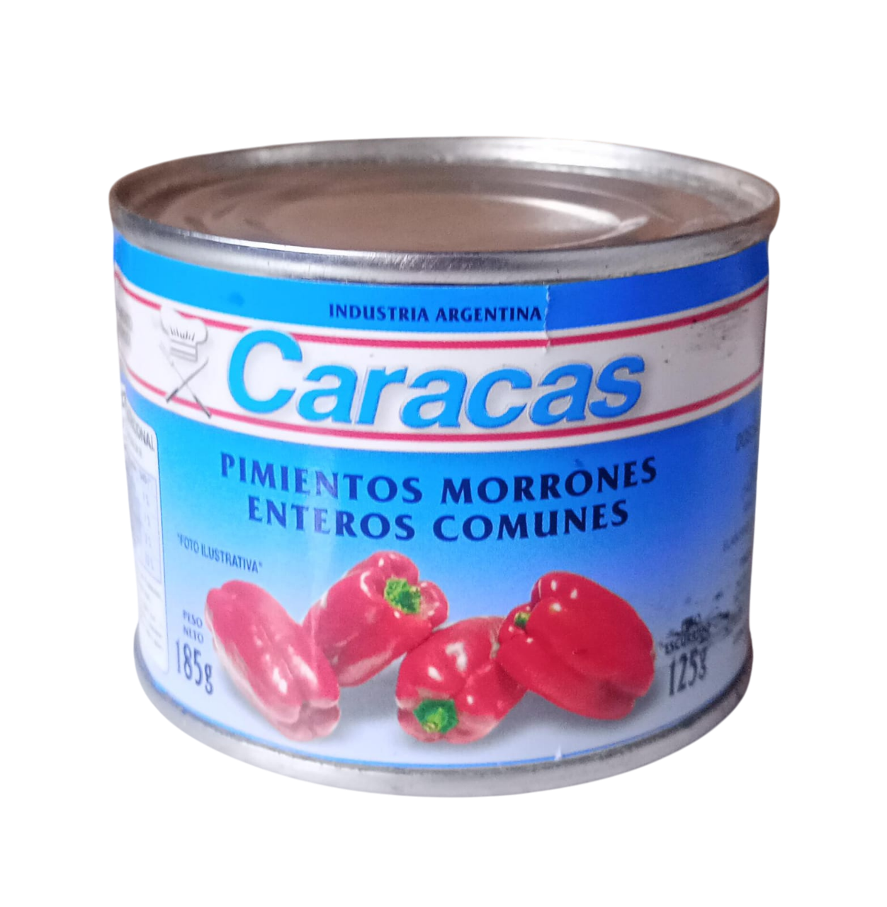 Pimientos morrones enteros. Lata por 180 gr.